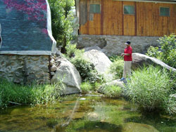 香蓮民俗旅游度假山莊位于北京、密云生態衛星城石城鎮境內的京都第一瀑自然風景區外,距檢票處30米,是去京都第一瀑、天門山風景區必經之路,距京都第一瀑奇觀100米。這里環境優雅,小溪潺潺,流水環繞整個山莊,夕陽西下,領略京都第一瀑奇特景觀,晚上習習涼風是空調無法比擬的,歡快的流水聲就像是大自然彈奏的悠揚樂曲,伴您進入夢鄉。本山莊是集吃、住、玩、娛樂、休閑、垂釣為一,民俗韻味十足,價格合理,是工薪階層、機關團體、學生的理想選擇。